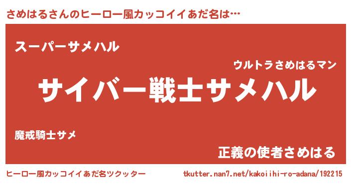 | 意味不明あだ名 | 『自称さめはる』『ペロリンさめはる』 |