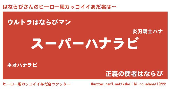 | 男性向けラノベタイトル風あだ名 | 『はならびの憂鬱』『ハナラビスレイヤー』 |