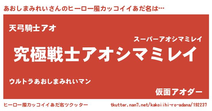 | 男性向けラノベタイトル風あだ名 | 『あおしまみれいに滅ぼされるだけの簡単なお仕事です』 |