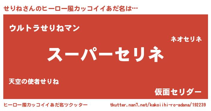 | 男性向けラノベタイトル風あだ名 | 『セリネスレイヤー』 |