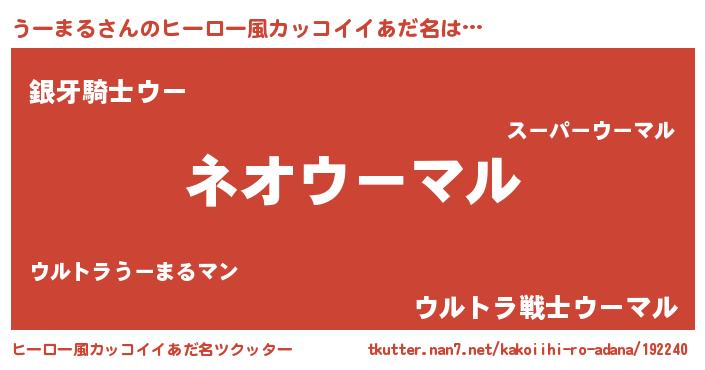 | 伝説のあだ名 | 『古より伝わる暗殺者うーまる』 |