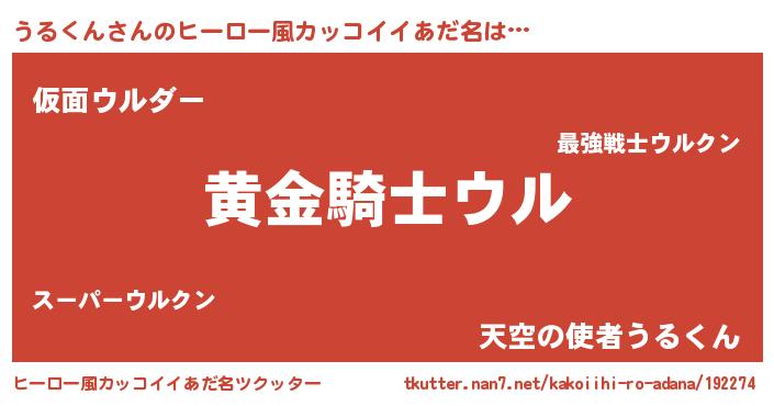 | 男性向けラノベタイトル風あだ名 | 『緋弾のウルクン』『魔弾の王とうるくん』 |