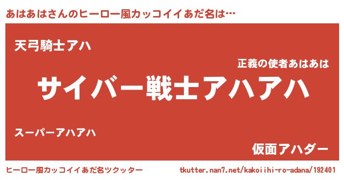 | 男性向けラノベタイトル風あだ名 | 『Re:あはあはから始める異世界生活』 |
