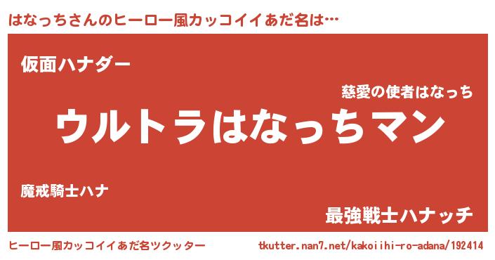 | 男性向けラノベタイトル風あだ名 | 『緋弾のハナッチ』『魔弾の王とはなっち』 |