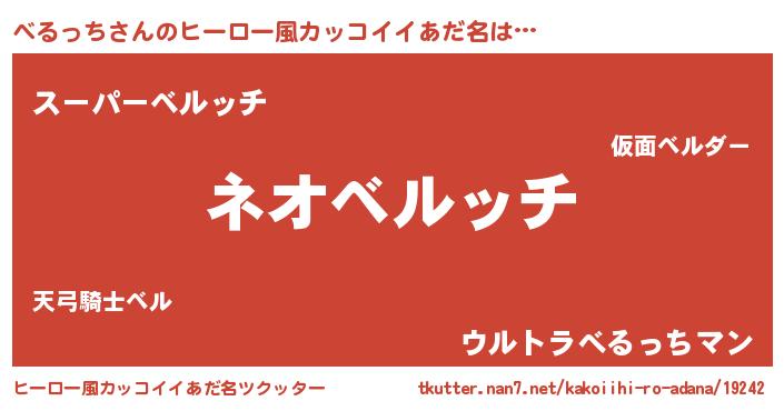 | 胡散臭い通販商品みたいなあだ名 | 『来世でも幸せになれる健康食品…その名も「べるっち」』 |