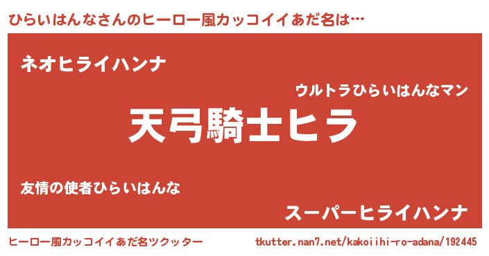 | ポケモン風あだ名 | 『ヒラキング』『ヒヒライハンナ』 |