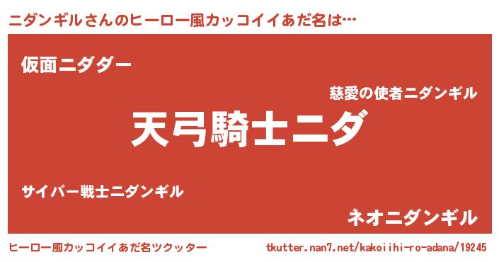 | 男性向けラノベタイトル風あだ名 | 『ニダンギルの嫁は女の子じゃないと思った?』 |