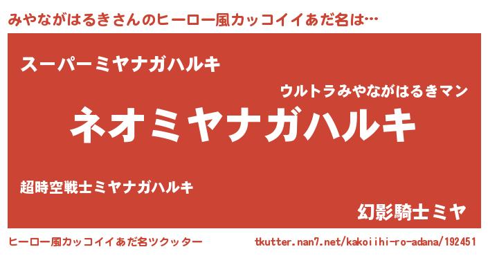 | ヘコむあだ名 | 『みやながはるき(震え声)』『みやふぇ~』 |