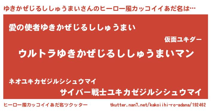 | ファンタジー風あだ名 | 『エターナルユキカゼジルシシュウマイー』 |