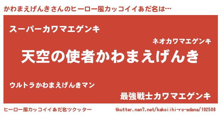 | 男性向けラノベタイトル風あだ名 | 『かわまえげんきに滅ぼされるだけの簡単なお仕事です』 |