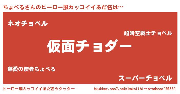 | 男性向けラノベタイトル風あだ名 | 『この素晴らしい世界にちょべるを!』 |