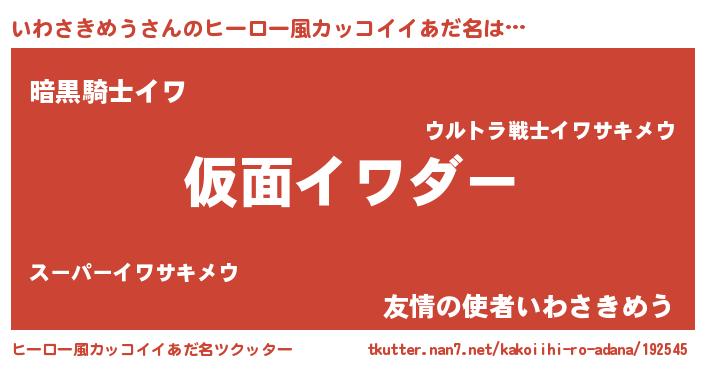 | 男性向けラノベタイトル風あだ名 | 『いわさきめう~年齢イコール彼女いない歴の魔法使い~』 |