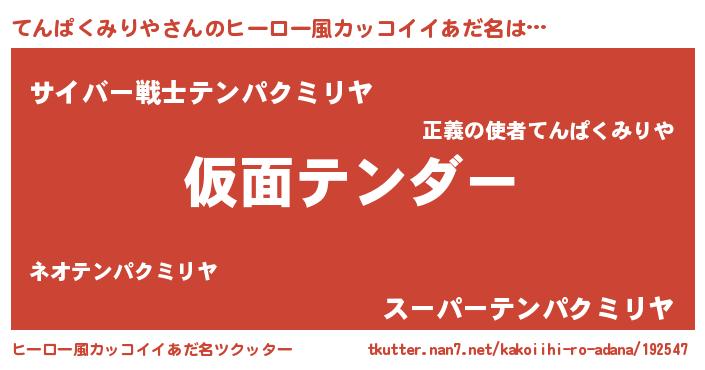 | 男性向けラノベタイトル風あだ名 | 『魔弾の王とてんぱくみりや』 |