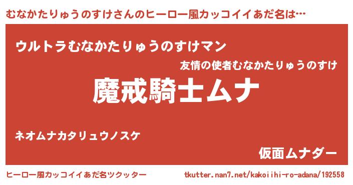 | 男性向けラノベタイトル風あだ名 | 『ダンジョンにむなかたりゅうのすけを求めるのは間違っているだろうか』 |