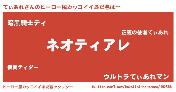 | ヘコむあだ名 | 『てぃあれ(小並感)』『てぃお』 |