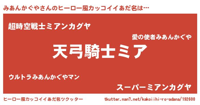 | 男性向けラノベタイトル風あだ名 | 『みあんかぐやの嫁は女の子じゃないと思った?』 |
