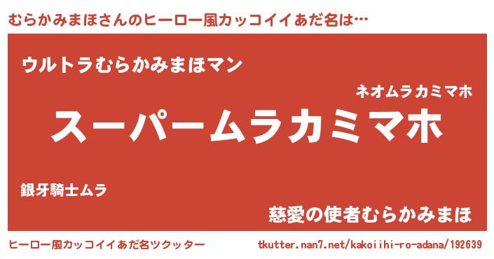 | 男性向けラノベタイトル風あだ名 | 『転生したらむらかみまほだった件』 |