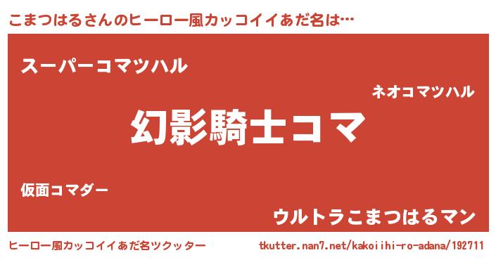 | 胡散臭い通販商品みたいなあだ名 | 『全米が絶賛したサプリメント…その名も「こまつはる」』 |