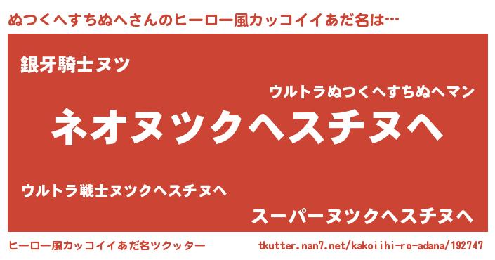 | 男性向けラノベタイトル風あだ名 | 『ぬつくへすちぬへという概念が存在しない退屈な世界 』 |