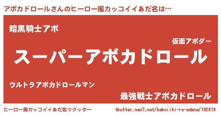 アボカドロールさんのヒーロー風カッコイイあだ名をツクッター!