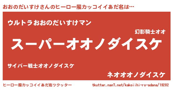 | 女子向けラノベタイトル風あだ名 | 『おおのだいすけの玉の輿計画!』 |