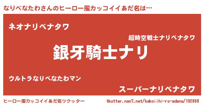 | 女子向けラノベタイトル風あだ名 | 『なりべなたわの卵を拾いまして』 |