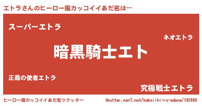 | 胡散臭い通販商品みたいなあだ名 | 『信頼と実績のサプリメント…その名も「エトラ」』 |