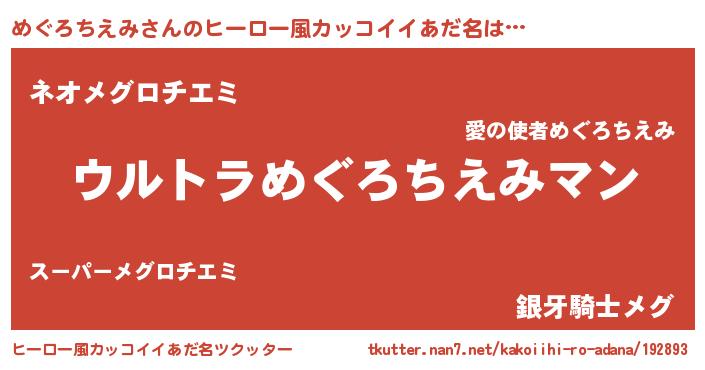 | 意味不明あだ名 | 『めぐろちえみフォーエバー』 |