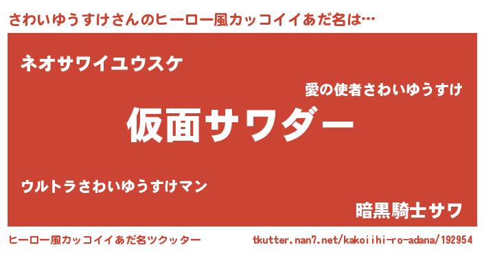 | 意味不明あだ名 | 『住所不定無職さわいゆうすけ(62歳)』 |
