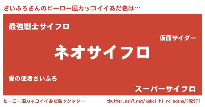 | 意味不明あだ名 | 『永久保存さいふろ』『自称さいふろ』 |