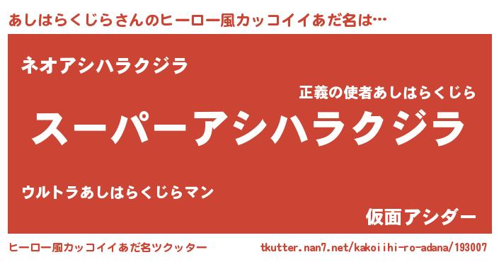あしはらくじらさんのヒーロー風カッコイイあだ名をツクッター!