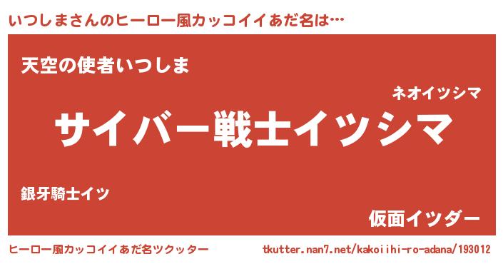 | 男性向けラノベタイトル風あだ名 | 『Re:いつしまから始める異世界生活』 |