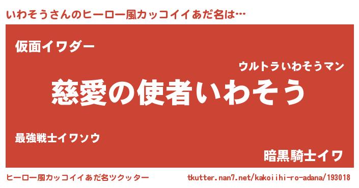 | ピコ太郎風あだ名 | 『イイ太郎』『イワ六郎』『ピイ二郎』 |