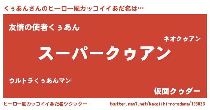 | 男性向けラノベタイトル風あだ名 | 『クゥアンアートオンライン』 |