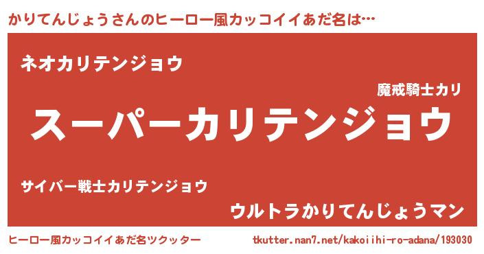| 男性向けラノベタイトル風あだ名 | 『かりてんじょうの憂鬱』 |