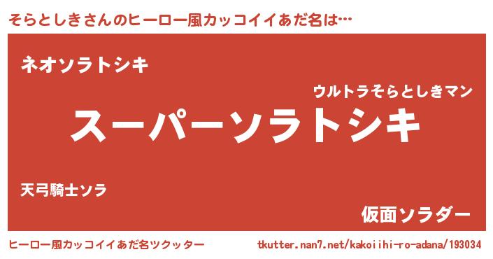 | 男性向けラノベタイトル風あだ名 | 『そらとしきの憂鬱』『緋弾のソラトシキ』 |