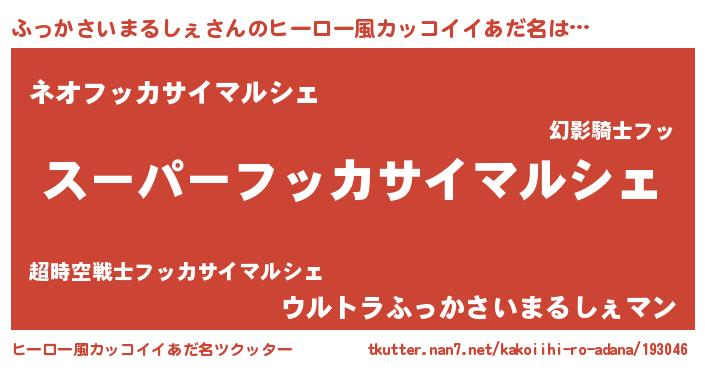 | 欧米人風あだ名 | 『マイケルふっかさいまるしぇ』 |