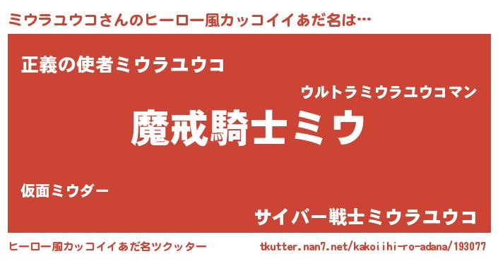 | 女子向けラノベタイトル風あだ名 | 『ミウラユウコの卵を拾いまして』 |