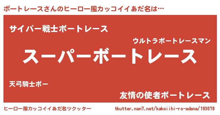 | 女子向けラノベタイトル風あだ名 | 『(仮)ボートレースのやんごとなき事情』 |