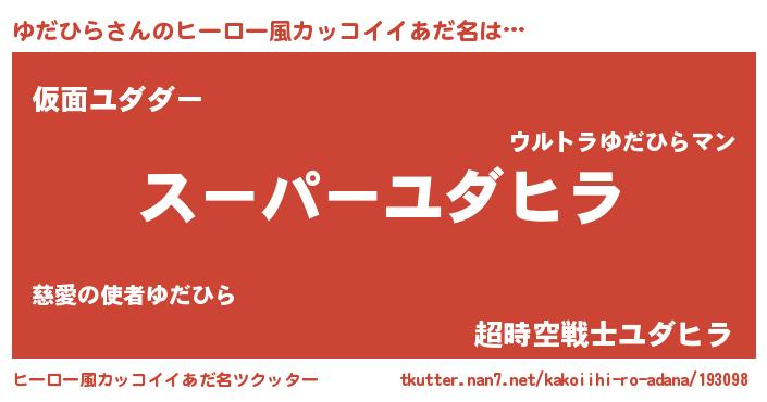 | 男性向けラノベタイトル風あだ名 | 『ゆだひら~年齢イコール彼女いない歴の魔法使い~』 |
