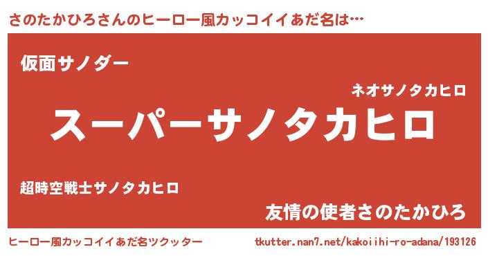 | 男性向けラノベタイトル風あだ名 | 『サノタカヒロアートオンライン』 |