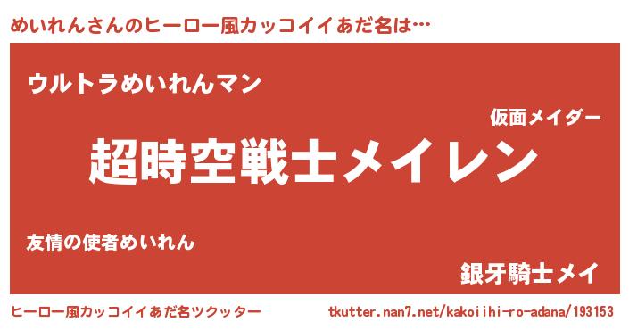 | 恥ずかしいあだ名 | 『メイレンデラックス』『めいっちょ』 |