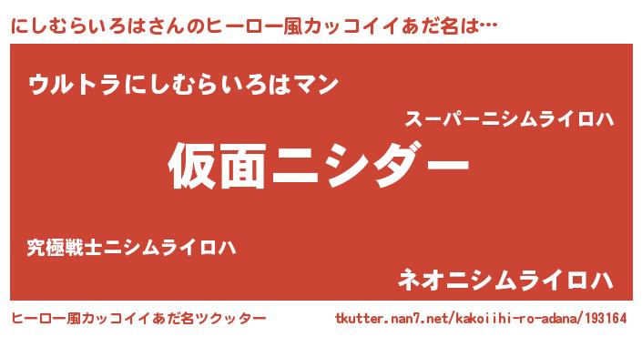 | 意味不明あだ名 | 『住所不定無職にしむらいろは(85歳)』 |