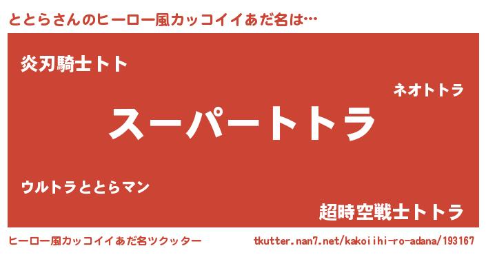 | 胡散臭い通販商品みたいなあだ名 | 『モテモテ間違いなし水晶球…その名も「ととら」』 |