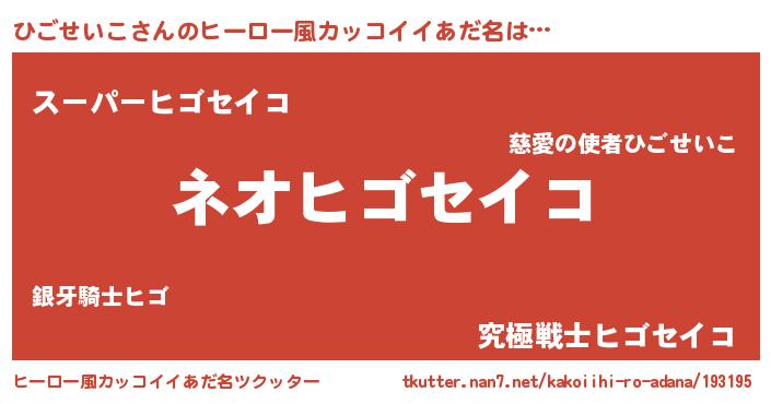 | 女子向けラノベタイトル風あだ名 | 『異世界で失敗しない100のひごせいこ』 |
