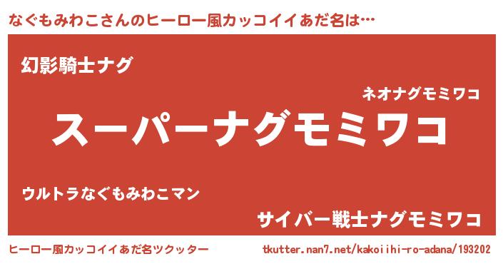 | ポケモン風あだ名 | 『ナグチュウ』『ヒナグモミワコ』 |