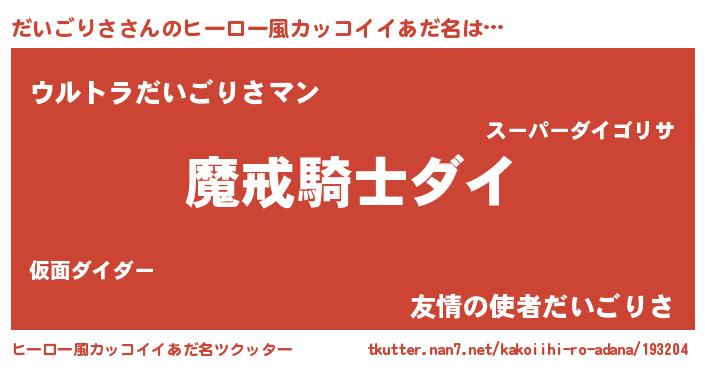 | 意味不明あだ名 | 『とにかく怪しいだいごりさ』 |