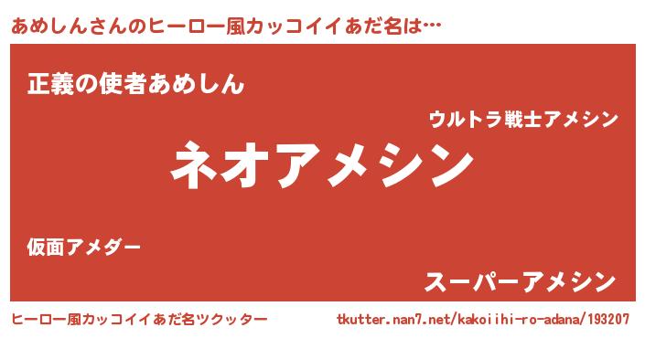 | ヘコむあだ名 | 『あめしん(小並感)』『あめにー』 |
