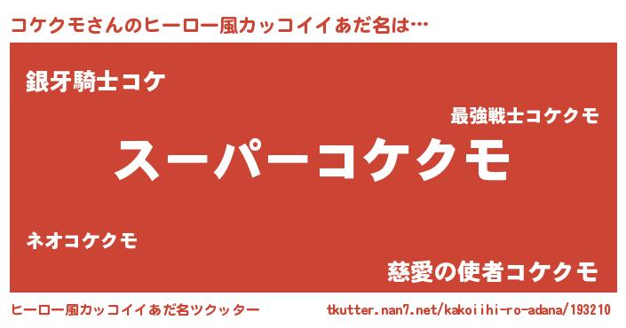 | 意味不明あだ名 | 『ペロリンコケクモ』『自称コケクモ』 |