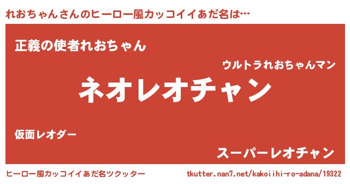 | 女子向けラノベタイトル風あだ名 | 『異世界で失敗しない100のれおちゃん』 |
